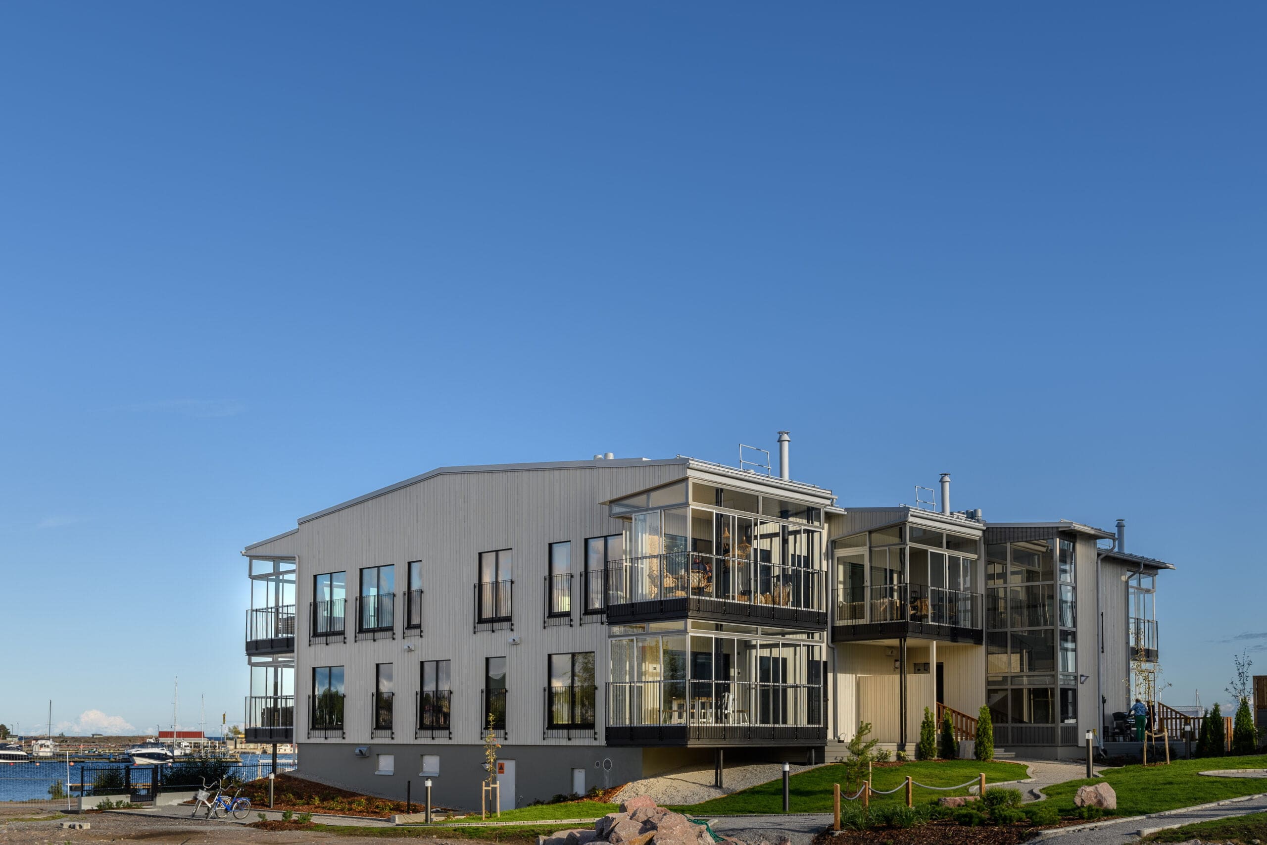 Ljus träfasad kompletterar Hangös marina arkitektur