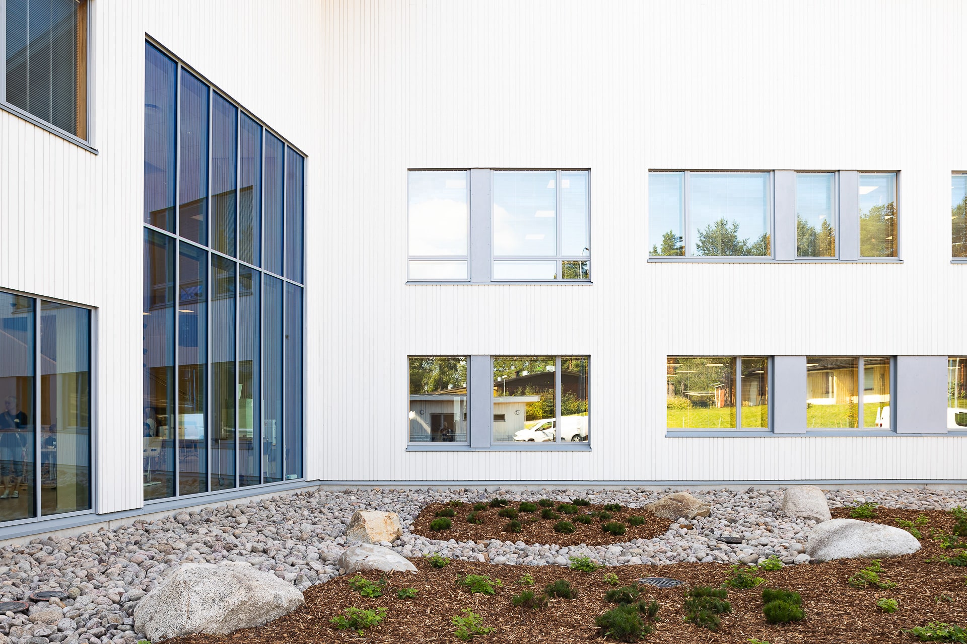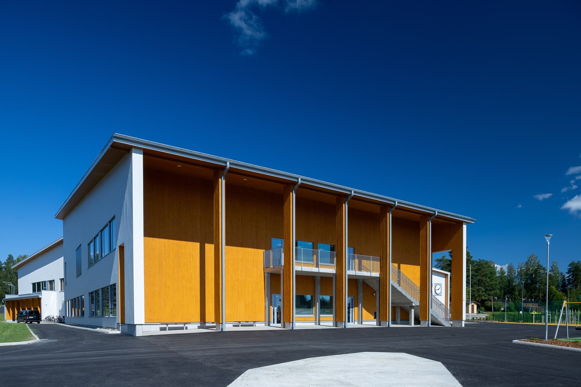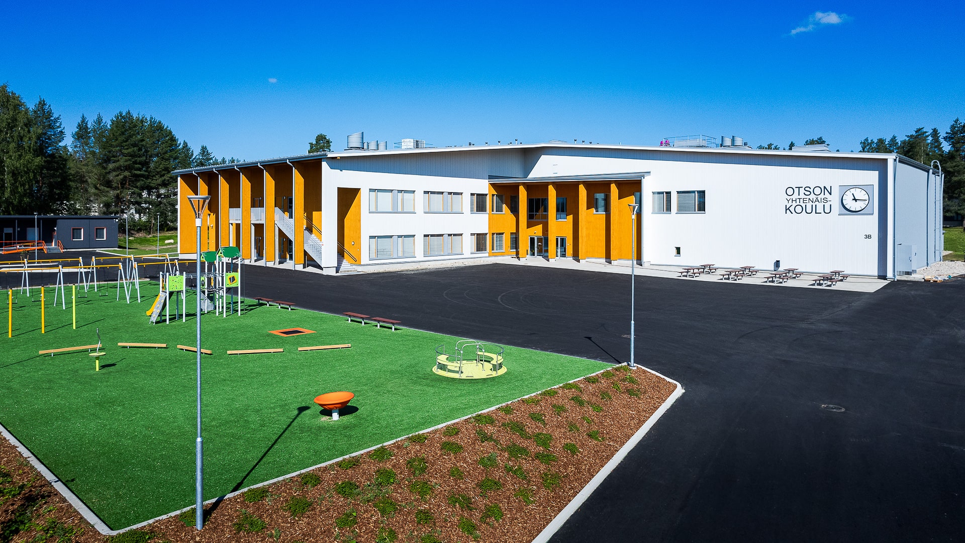 Som helhet representerar Otso enhetsskola en genomtänkt och tidlös arkitektur där materialvalen stöder byggnadens funktion och identitet. Den klara färgpaletten och trä som fasadmaterial skapar ett lugnt och välkomnande uttryck för elever, personal och besökare.