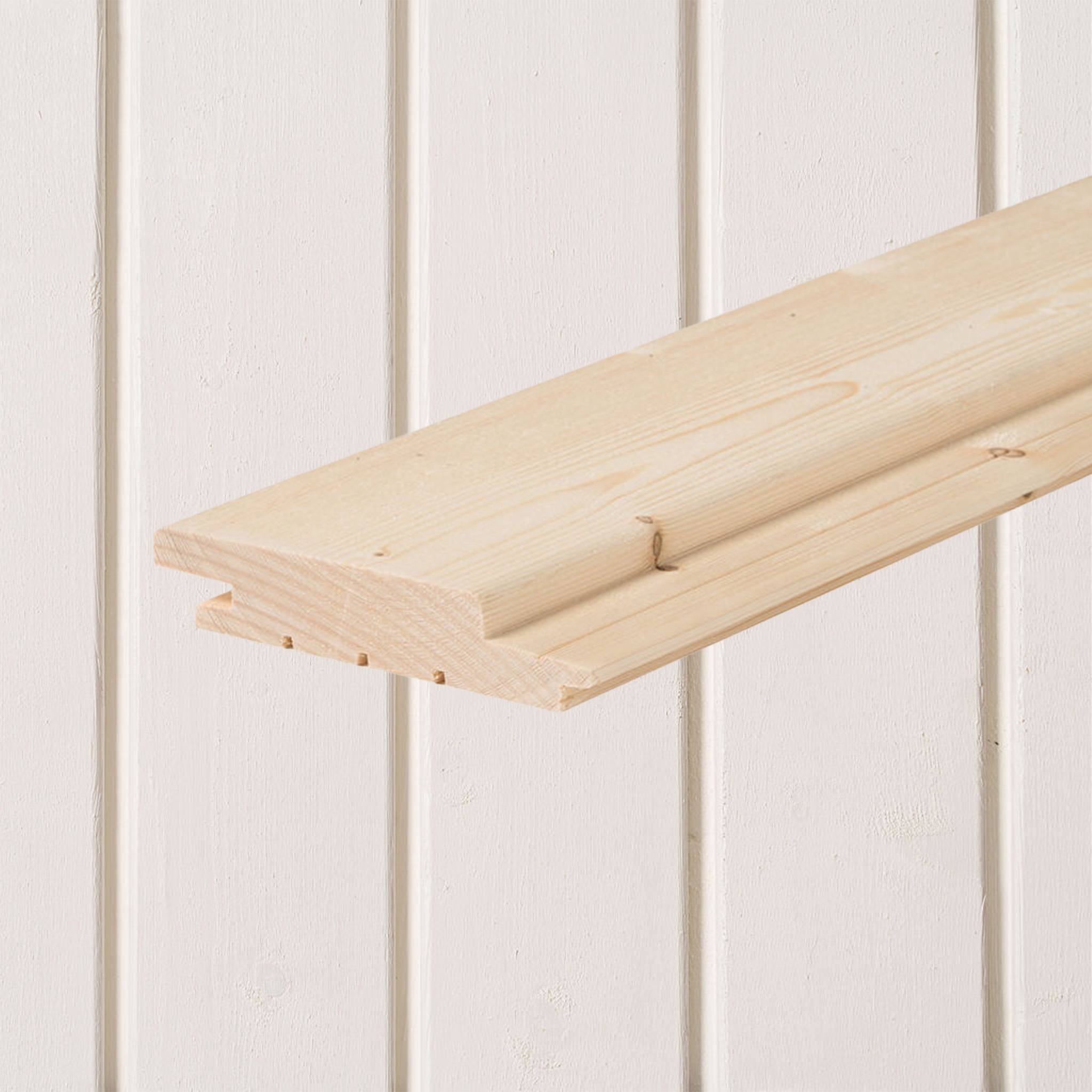 Våra produkter tillverkas huvudsakligen av gran. I de bredare panelerna används antingen gran eller furu.