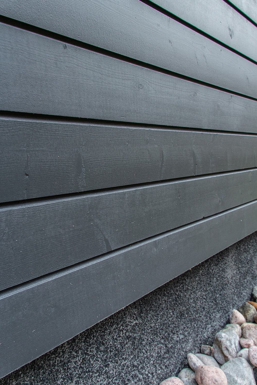 Vaara Nordic™ UTWp 28×170 ytterpanel är särskilt utformad för liggande montering. Profilens båda snedfaser är parallella, vilket skapar en tydlig och elegant skåra mellan panelerna.